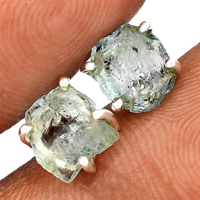 AQUAMARINE ROUGH 925 STERLING SILVER STUDS